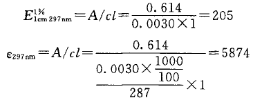 規(guī)定的吸收系數(shù),系指E,即在指定波長時,光路長度為1 cm,試樣濃度換算為1%(gml)時的吸光度值,故應(yīng)先求被測樣品的E值,再與規(guī)定的E標準值比較,可計算出供試樣品的含量。