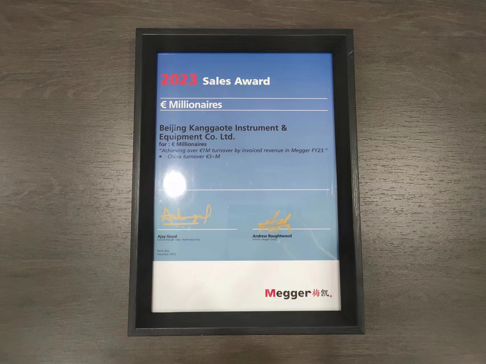 北京康高特儀器設備導讀:北京康高特儀器設備有限公司榮獲Megger China 2023年度銷售*,并且再次獲得“百萬歐元俱樂部成員”獎項,這已經(jīng)是康高特連續(xù)第4年獲得此榮譽!
